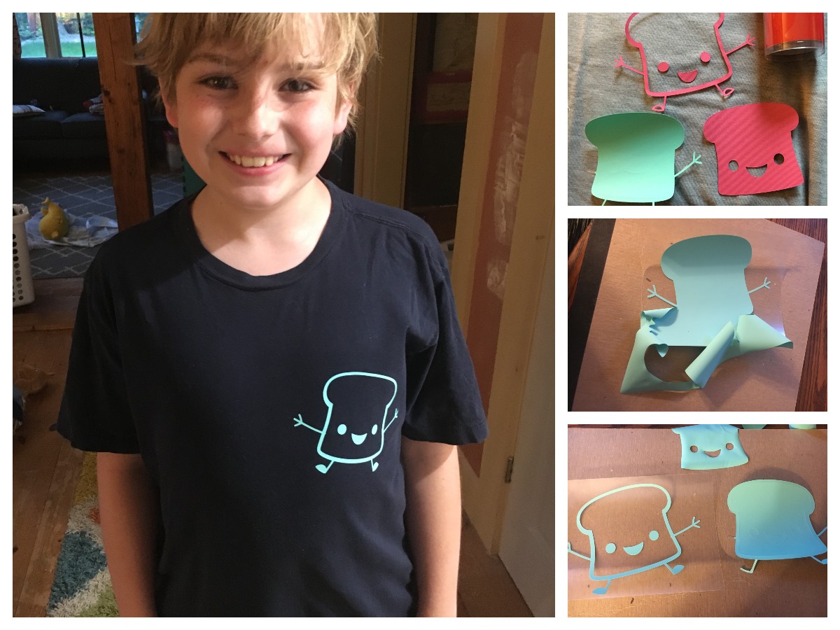 After a few simple cardboard cut outs, I decided to try my first simple vinyl cut from one of their stock images. It took me a few badly done cuts, and one conveniently timed instructional video, to get used to Vinyl, but once it was done, everyone was pleased with the result. Up to this point I have been a mostly cardstock only Cricut cutter. I have made a few statements in vinyl to put on the wall, but I have been fairly skittish of everything else. The Maker takes away all my fears, and makes a daunting task simpler than I ever dreamed it could be I want to put this little toast guy on everything now.