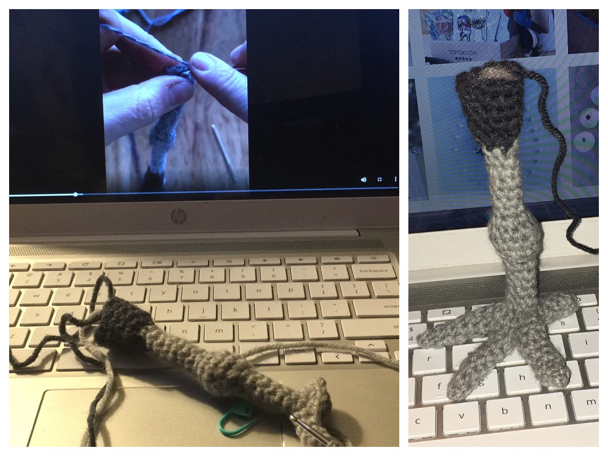 Very often I would have the videos playing on a loop while I was working. I have found that watching crochet videos can be very soothing to me, and for something I need to concentrate on, can give me focus. Focus is in short supply in my house of late. Once the first leg was done, I was officially hooked on birds. The structure of the pattern, the technique for attaching claws, everything about this was impressive and easier to learn than I had anticipated. The IGTV feed, the online videos, the support from other crafters working on the CAL. This was such a great way to learn or practice new techniques.