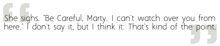 Unfortunately, at the same time, Marty’s eating difficulties are getting more and more pronounced. Both his health conditions are handled sensitively if dealt with a little too easily (as is often the way in fiction), but the first-person perspectives on food in many parts of the book may well be intensely triggering to readers also struggling with their relationship with food. LGBTQ readers who have grown up in conservative, religious families may also find some scenes upsetting, especially the flashback-style diary entries where Marty recalls his first visit to London with his parents.