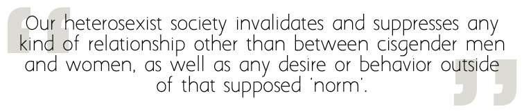 The second half of the book looks at the history of bisexuality and the issues faced by bisexuals then and today. The chapter on history was especially eye-opening as it showed how bisexuals have always been around and also heavily involved in the gay rights movement despite a popular narrative that shows us as riding in on the coattails of gay men and lesbians “without actually being a part of the fight.” The concepts of biphobia and bi-erasure are explored in detail before an in-depth look at the issues faced by bisexuals today that include vastly increased rates of mental illness, homelessness, domestic abuse, and self-harm over any other group. These high rates are even worse for bisexuals who are marginalized in other ways including those who are disabled, transgender, and bisexuals of color. The book ends on a positive note, however, with a look at bi communities around the world and the work they are doing—despite extra hardships—to help bisexuals in every part of the world.