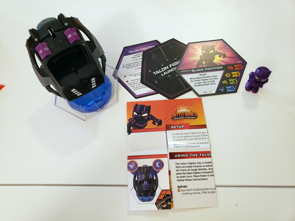 This expansion is the favorite of my ten-year-old. The Hero Mover and Cards are all similar in quality, etc. to what the rest of the collection has. The Talon Fighter is really neat and had little spinners and a plastic Pilot Token that help direct gameplay. It’s just a few pieces but it adds another layer of strategic options to the game that we really found enjoyable. Any Black Panther fans in your house will love to get their hands on this.