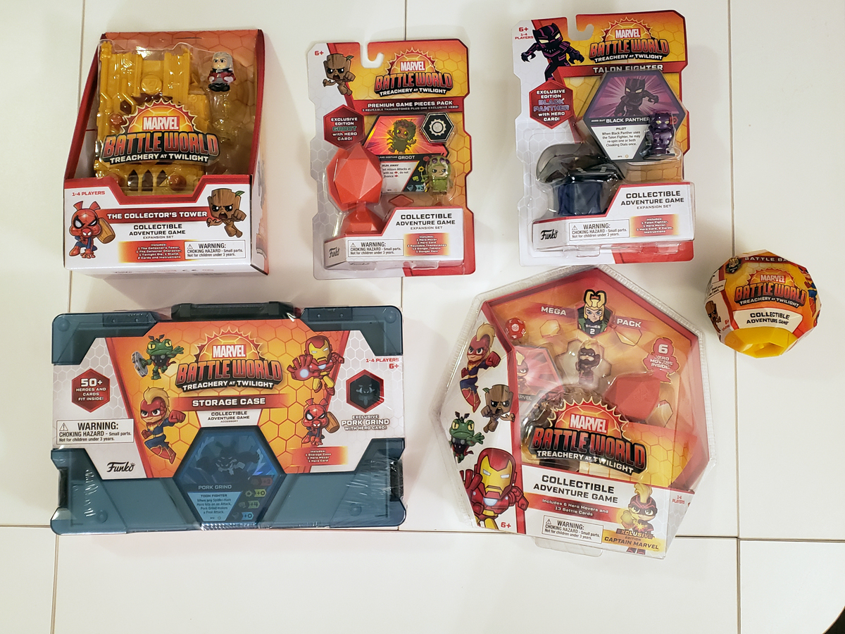 Marvel Battleworld: Treachery at Twilight is the second series of the Marvel Battleworld franchise. It is a collectible figure game where figures represent a variety of Marvel characters that have their own stats and powers. These figures are used to defeat various villains. It is compatible with the Marvel Battleworld Series 1 line (Mystery of the Thanostones). The game is intended for 1-4 players ages 6+ and takes around 15-30 minutes to play. The Treachery at Twilight line includes a Mega Pack, Battle Ball, Storage Case, Talon Fighter, Collector’s Tower, and the Premium Pieces Pack. The items range from an MSRP of $7.99 to $24.99.