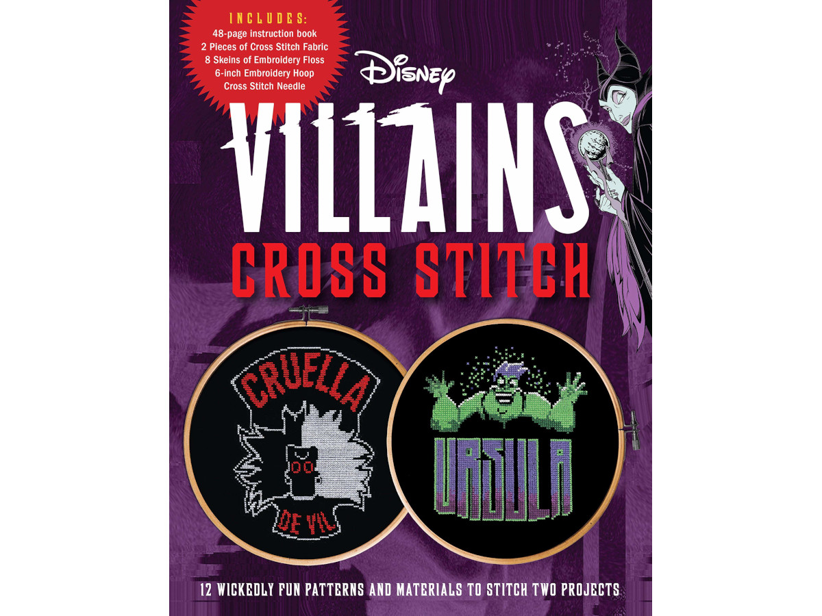 With 12 patterns and enough materials included to make two of them, this Disney Villains Cross Stitch kit is all you need to get started. They even include a hoop and a blunted needle. All you probably need is scissors.