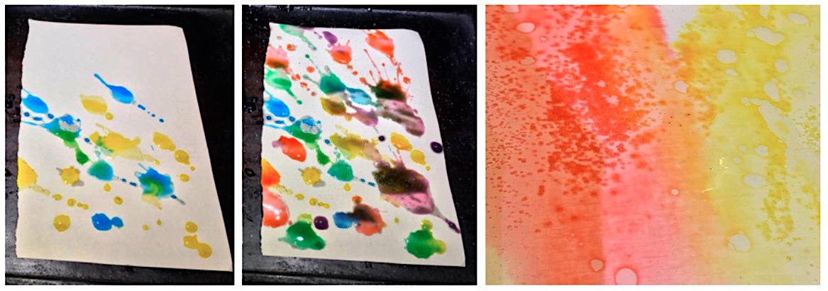This project can get messy, so younger artists want to wear something to cover their clothes, and make sure the surface is placed on a tray or large cooking sheet with edges.