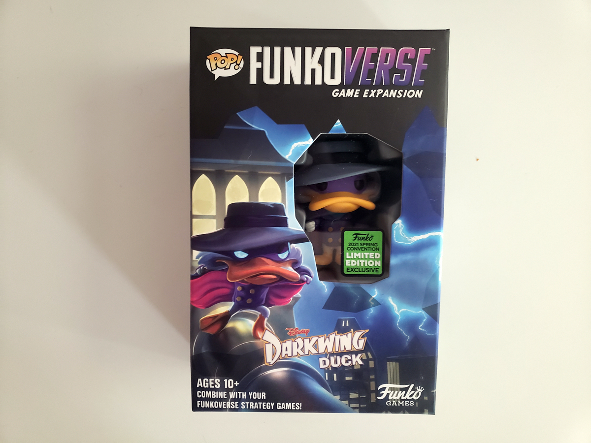 As a child of the ’90s, Darkwing Duck was a vital part of my after-school routine along with the other cartoons from The Disney Afternoon programming. I still fondly remember the debut of Drake Mallard and his alter ego Darkwing Duck, and thanks to Disney+, my children discovered the entire Disney Afternoon lineup while stuck at home this past year and watched every episode of DW’s adventures. I’m pretty sure our oldest kid could bust out the entire theme song from memory if he was asked. Funko Games dropped a Darkwing Duck-themed expansion for the Funkoverse game this past spring as a 2021 Spring Convention Limited Edition Exclusive. Luckily, like many things pasted around Funko collectibles, this was a shared exclusive and can still be obtained by anyone who wants their Funkoverse game to “get dangerous.” Funko Games recently sent me a copy of Funkoverse: Darkwing Duck 100 to review.