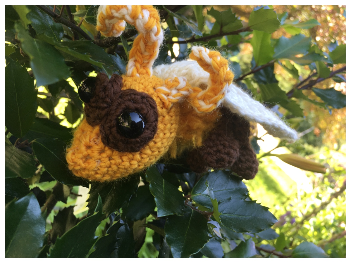 As I began the bee’s body, I was a little disappointed in the tension the yarn held, and the gaps it produced. However, as the pattern progressed and began to pull together, the gaps lessened. Once stuffed they were imperceptible.