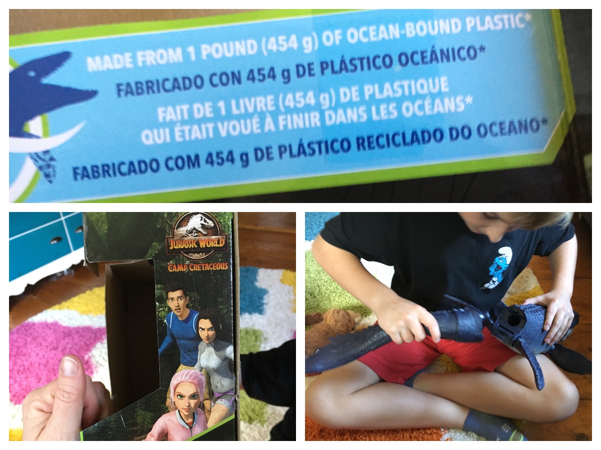 For my twelve year old however, Green Toys no longer really fits the bill in terms of play, and so I’m glad to see that some other toy companies have over the past several years started venturing into the recycled field. The influence of the popularity and profitability of Green Toys themselves having played no small part in that I’m sure. This year’s toy list from Mattel includes an enormous Mosasaurus from the Jurassic World Camp Cretaceous range, now that is a lot of potential plastic. It is in fact made of one pound of plastic, but thanks to changing demands from parents, instead of traditional plastic, this is made from one pound of “Ocean Bound” plastic. This is discarded plastic generated from the company’s many products, that would otherwise have found its way into a dumping site, that instead of dumping they are now converting into reusable plastic. Now we could be pessimistic about this, and say we need giant moon sized steps in environmental care right now, but I will take any steps towards better use of plastics in my kids toys. Mattel as a whole has made many environmental improvements since I was a kid in the 80s, and since 2019 they have committed wholeheartedly to cleaner toys, with the announcement that they would achieve 100% recycled, recyclable or bio-based plastics materials, products, and packaging by 2030.