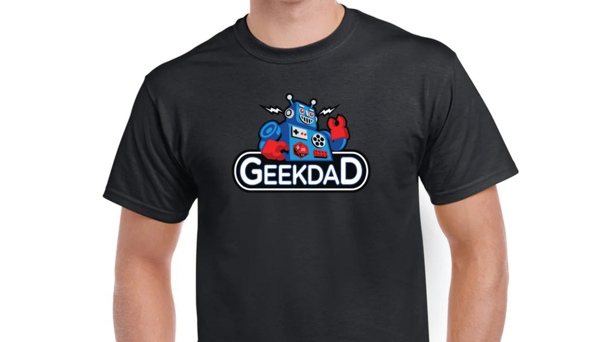 So you need just the right thing for the geeky parent in your extended family? How about the shiny robot GeekDad t-shirt? This is based on the special design we had done for a Patreon backers-only hockey jersey a couple years back. Now it’s available to everyone as a classic black or white t-shirt.
