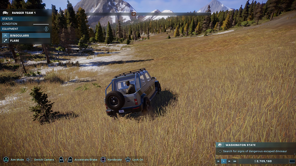 The Campaign Mode is probably JWE2‘s main game mode, and almost certainly where you’ll want to begin playing. Here you’ll find yourself picking up where Fallen Kingdom left off: the dinosaurs have escaped and are now roaming wild across America. This is where JWE2 really stands out from other Jurassic franchise games because you’ll get to play across a variety of landscapes, not just the tropical climates of Costa Rica. Working with the Department of Fish and Wildlife, you’ll begin in Arizona helping to contain a number of wild dinosaurs—you can check out my complete playthrough video of the entire first level in Arizona on my YouTube channel—before moving on to clean up a dinosaur poacher camp along the snowy Canadian border, and then setting up a hub in Pennsylvania.