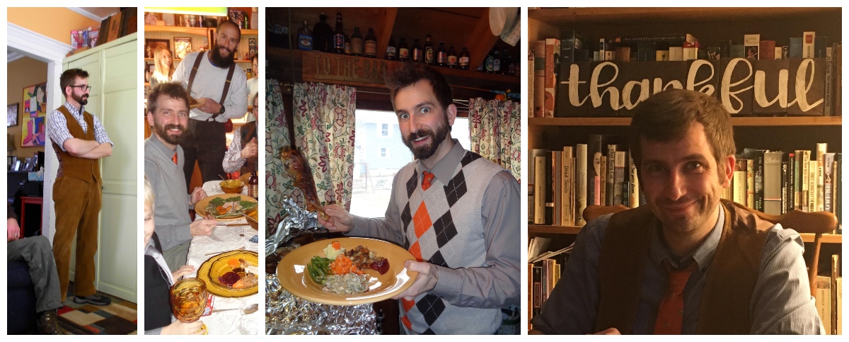 Thanksgiving has always been his favorite holiday, if not his favorite day of the year. One year when my grandmother was sick and we had to fly home to England, my mom hosted Thanksgiving for him in my childhood home. Friends and family took time out of their normal work day to stop by and eat some Turkey with us. Last year was a little hinky of course. We did a full Thanksgiving outside in September, so we could all sit in our household groups but still spend time together. We had a hat competition, and lobbed stories across the garden. Then on the actual November date, we stayed home, dressed up for ourselves, and cooked our first Turkey in our house. This year is weird for other Covid19 adjacent reasons and we will be home again.