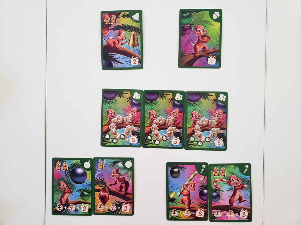 - Candy Cane Pair: For Every Chip and Dale combo pair you get 3 points. Single Ornament Cards or two of the same character do not score.