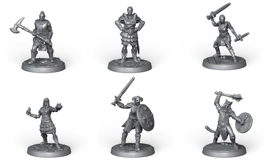 - Six 32mm Scale Figures (Imperial, Nord, Orsimer, Altmer, Dunmer, Khajit)