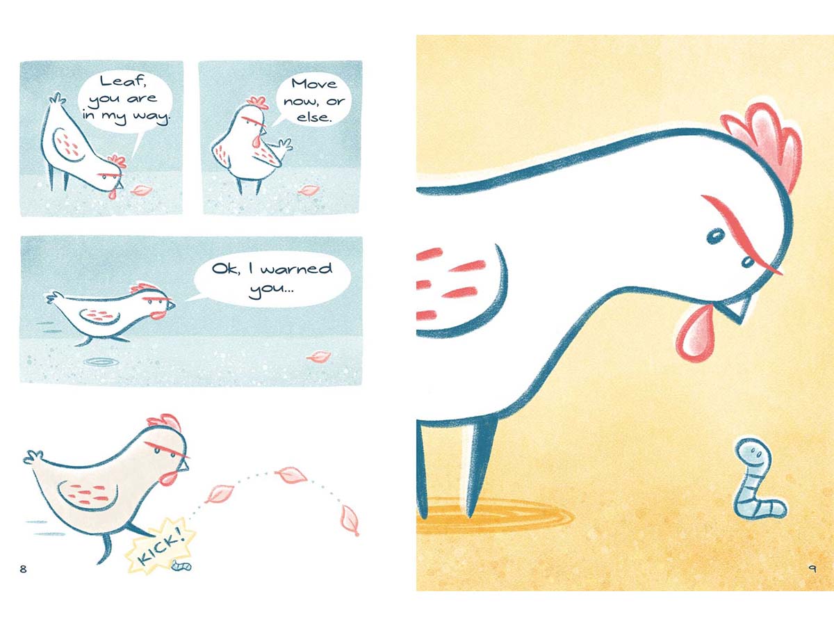 Sunshine character meets grumpy character in this book about friendship between two unlikely individuals. Cranky Chicken is…well…a cranky chicken. One day, he meets a friendly sunshine worm who just wants to be his friend. It’s a mismatched friendship that just works and shows that everyone can be friends with someone if they make the effort.