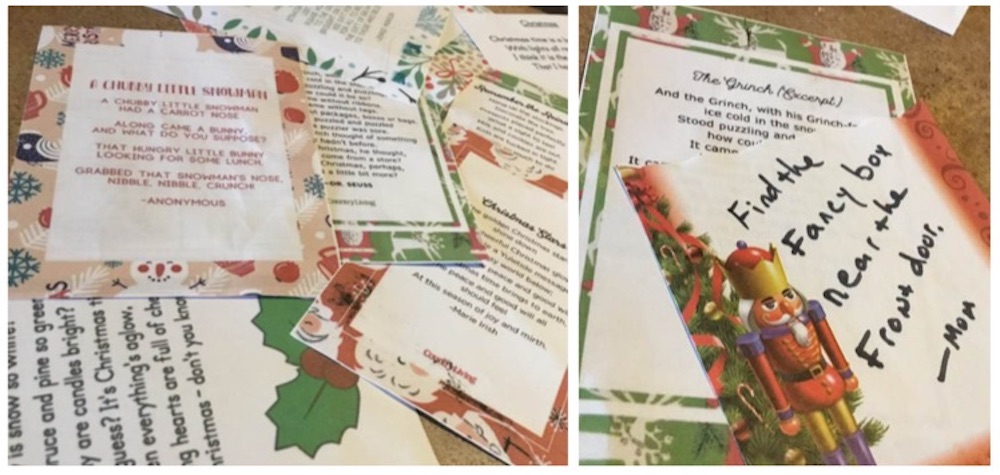 On the night 24th, they can seek out the listed hiding place and find a new book! Of course, a “new” book can also include one from a used bookstore or an old family book they might not have seen. Include a packet of cocoa or cider, microwave popcorn, or a different snack to help round out the cozy evening, especially if they are getting anxious for Christmas morning.