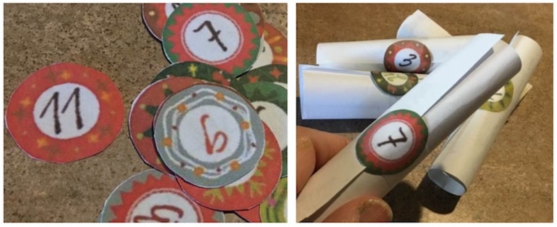Divide the pages into 24 sections, and roll each section into a scroll. It is fine to roll more than one page into one scroll. Tie each scroll with a pretty ribbon. Add a little gift tag to each scroll, with the numbers 1 through 24.