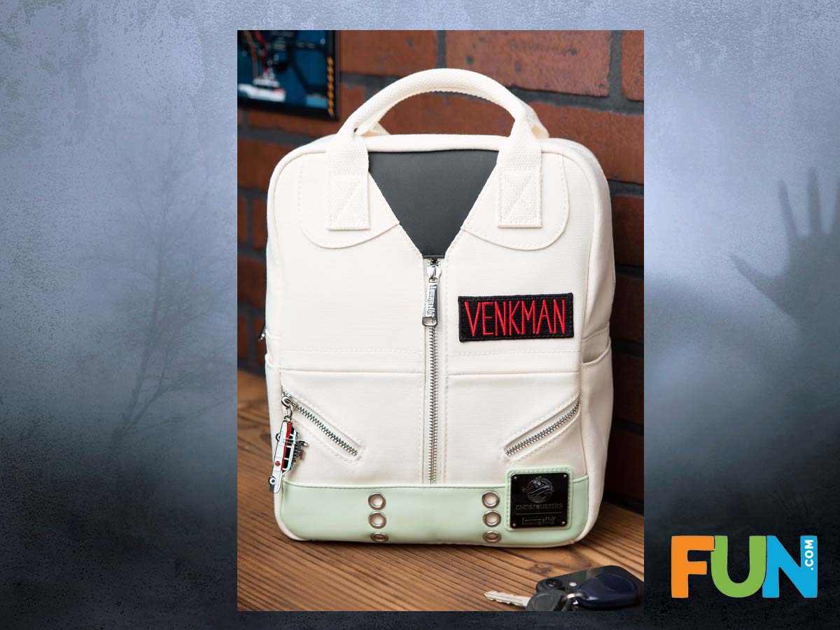 Loungefly bags are all typically the same. Small backpacks with the exact same dimensions just different patterns. I love this bag because it’s the Loungefly quality but with a larger, rectangular shape that lets you carry more. The canvas surface looks just like the Ghostbuster uniform complete with Venkman’s name tag. The classic Ghostbuster logo is on the side as well as the signature metal Loungefly label. The inside has a Ghostbuster scatter pattern. Ecto-1 takes the stage as the zipper tag. This is a great bag to go along with a Ghostbuster cosplay or just out and about town hunting ghosts.