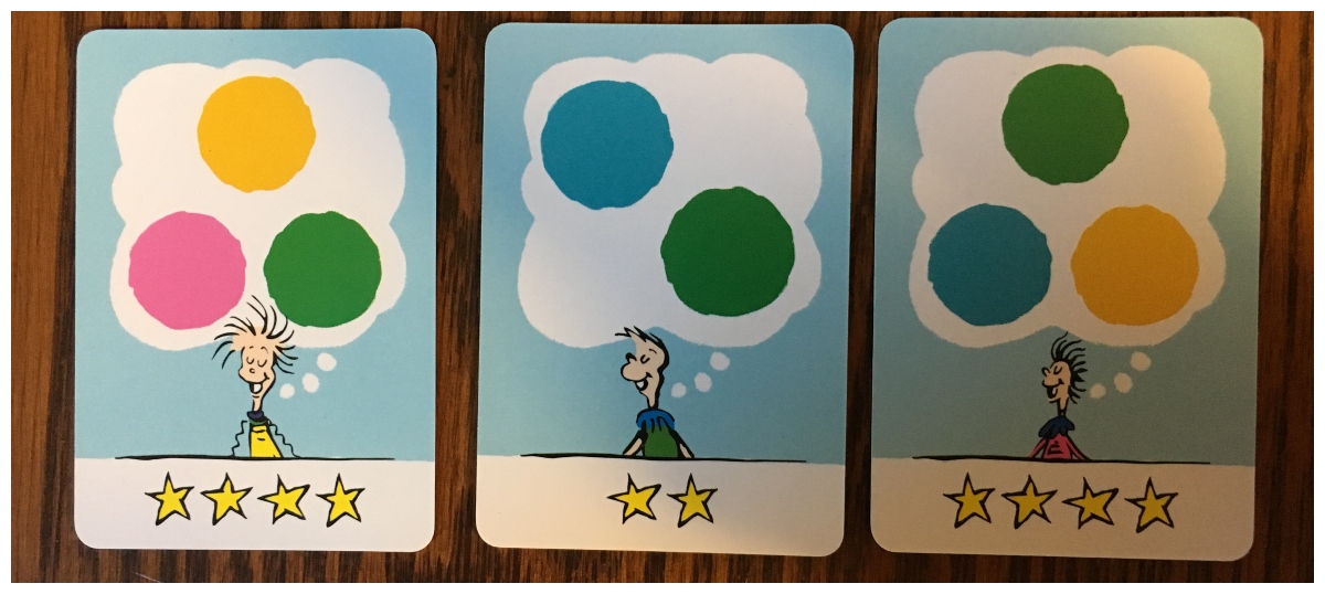 When scoring a wish, the more colored presents there are on the wish, the more stars the card is worth and, so the more points you will get. If the present dots are all greyed out they have to be the same color, but it doesn’t matter which color—Cindy Lou doesn’t mind what she gets for Christmas.