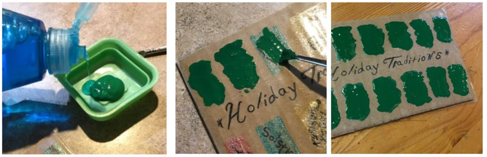 Paint a thick coat over each of the word squares and let it dry. It doesn’t have to be perfectly in line with the square or rectangle.