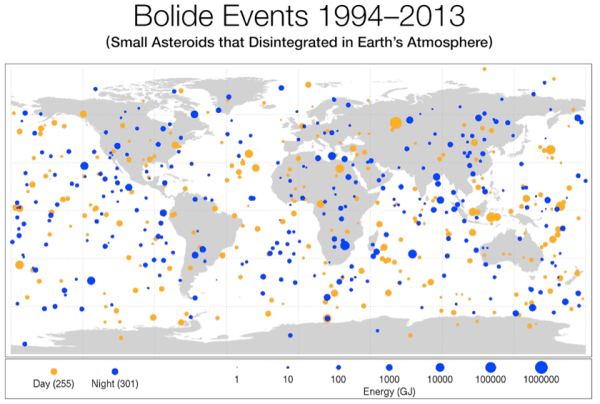 1. Atmosphere. The Earth has an atmosphere that not only makes life on our planet possible, but it protects us from impacts, acting like a layer of bubble wrap against meteors. Have you ever watched a meteor shower? Those streaks of light are bits of rock that are burning up as they pass through the layer of air surrounding Earth. Because of the high speed of the fragments and the density of the air particles, there is a lot of friction. Rub your hands together really fast, and you can feel what happens when friction increases: things can get really hot! These fragments get hot enough to burn up in the atmosphere completely, so most of them never reach Earth. Sometimes, larger things can make it through, like what happened in Chelyabinsk, Russia, in 2013, and Tunguska, Russia, in 1908. At times during Earth’s history, some really big things have made it through, like the asteroid or comet that caused the extinction of the dinosaurs (and about 75% of the rest of living creatures) about 70 million years ago. These occurrences are rare, but they do happen, which is one reason for NASA’s DART mission.