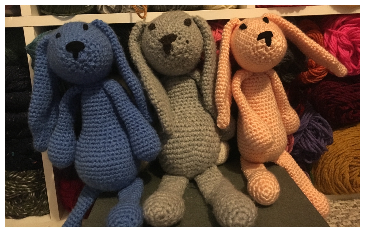 I find that at the end of the day, though my favorite projects of 2021 include Santa and Joanna the lobster, it is the basic patterns that appeal to me the most and that I keep coming back to. Right now I am cleansing my palate as I wait for Edward’s Menagerie: The New Collection to arrive by making a series of Emma the bunny in a variety of colors. I do so love working on her ears.