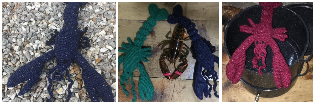 For my 40th birthday in 2021, I treated myself to a package from TOFT and found myself making a platter of lobsters. Joanna the lobster seems to be one of the most popular patterns in the TOFT community. It is certainly one of the most coveted patches, with a single patch fetching up to $100 on eBay. The first time I made one, I found the legs to be too fiddly and the pattern a little more than I was used to. But by the time I was done, I was absolutely besotted with making my favorite crustacean. I did not use the TOFT yarn for my first make, as I wanted something blue and speckly for my first lobster. It was rather thrilling hunting through all my local yarn stores for just the right one. I finally found several that would work and bought up a back stash with the plan of making many more for next summer.