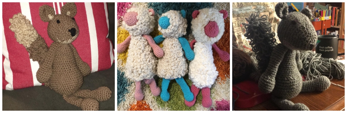 By the time friends began requesting animals, I was checking out online tutorials and polishing up my skills in the new-to-me stitches. In the early days, it was the squirrel and sheep patterns that friends coveted, and so I spent much of those early weeks creating fleeces and big fluffy tails.