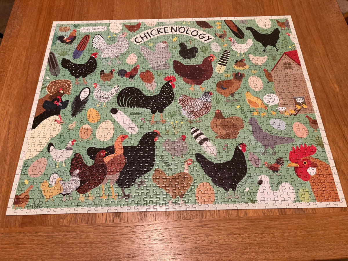 I was recently sent a new 1000-piece puzzle from Princeton Architectural Press called “Chickenology,” with artwork by Camilla Pintonato. I have a soft spot for chicken art, because my mom has collected neat chicken things for most of my life. But that aside, this puzzle stood on its own.
