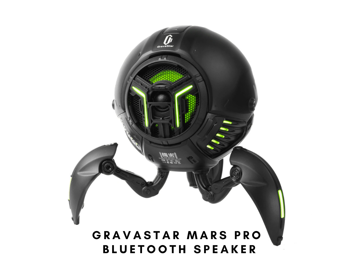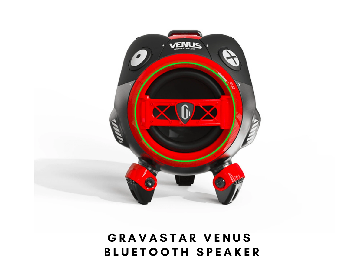 This speaker looks like it came straight out of the apocalypse. It has an amazing dual-speaker system that gives you rich sound. It utilizes Bluetooth 5.0, stays powered up for 15 hours per charge, and has some fun RGB lighting. The main body is made up of Zinc Alloy and has touch controls.
