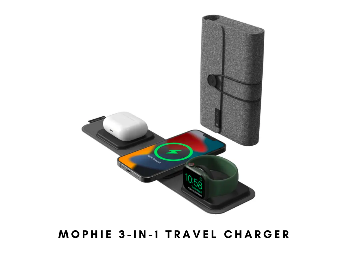 mophie’s 3-in-1 travel charger is all you need to keep your Apple devices charged on your nightstand while traveling. It has a spot for your Apple Watch and two other wireless charging devices. What I like about this travel charger is you only need the included USB-C charger to power it, and it comes with a travel case to keep the charging cable and charger together.