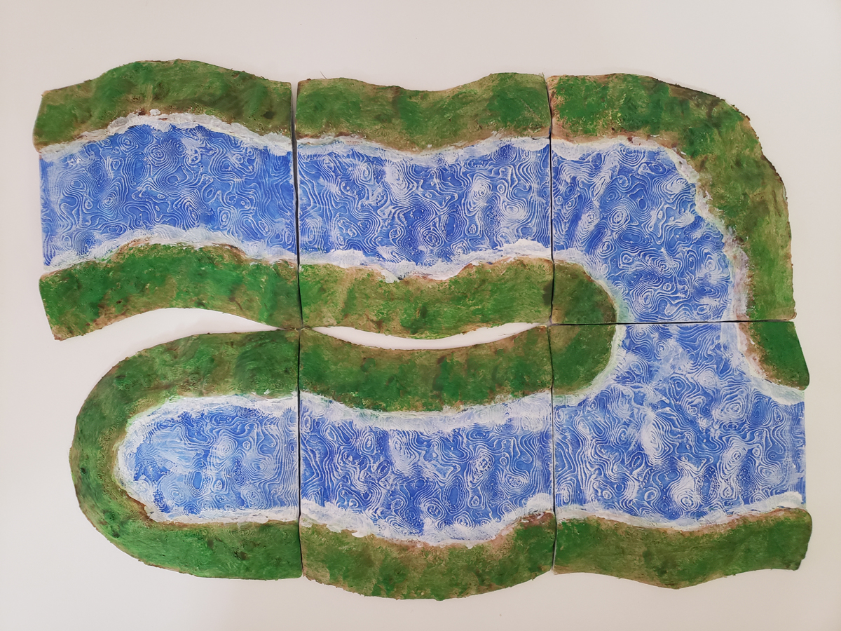 Sometimes printing projects don’t always happen in the order that you might expect. I started writing “Printed and Painted” articles with the Tower of Terror and the Tome of Portals. However, neither of these were technically the first gaming or prop projects that we printed. Our first bigger project was actually a Stream Set from Fat Dragon Games, which, like the Tower of Terror, was included in a Humble Bundle deal. It wasn’t the first project I had completed, however, because I was working on painting some other things from Dwarven Forge, and then I prioritized painting the stuff my kids were the most excited about. The nice thing is I was able to use some things I had learned in my previous painting adventures to apply to this job as well as pull in some of the new brushes I got for Mother’s Day. Part of what drew me to this set, in particular, was that I liked the modular nature of the pieces and of the sets we had from Dwarven Forge. Streams were not a thing we had in our collection yet.