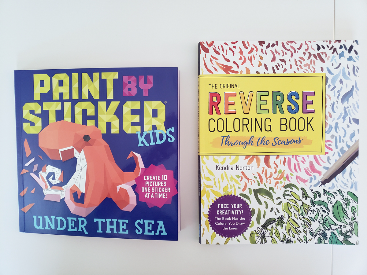 Summer vacation is officially here for us, and with that comes another common parenting challenge: keeping the kids from wanting to spend all summer in front of screens. This is sometimes an extra challenge for us because we live in the southwest where we hit 100 degrees before April was even over, so no one wants to go outside in the middle of the day especially as we are headed for extreme heat warnings. Add in the fact that we are a household of geeks and many geek hobbies include screens, and suddenly being inside in front of a screen makes a lot of sense. I was excited for Workman Publishing to send me several activity books because I want more choices for my kids that aren’t screen-related right now. We were sent the Paint by Sticker Kids: Under the Sea book and the Reverse Coloring Book: Through the Seasons.