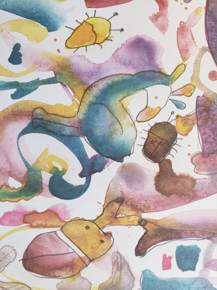 He slowly started to get the idea. I also found a shape that made me think of an otter (one of my favorite animals) and outlined that. We noted some bug-like shapes as well. I really like the creativity options in this one, and I feel like it could be fun for people who journal and like doodling. Simply cut out some sections of the pages to paste into your journal spreads and then you can doodle on them during the day/week/month.