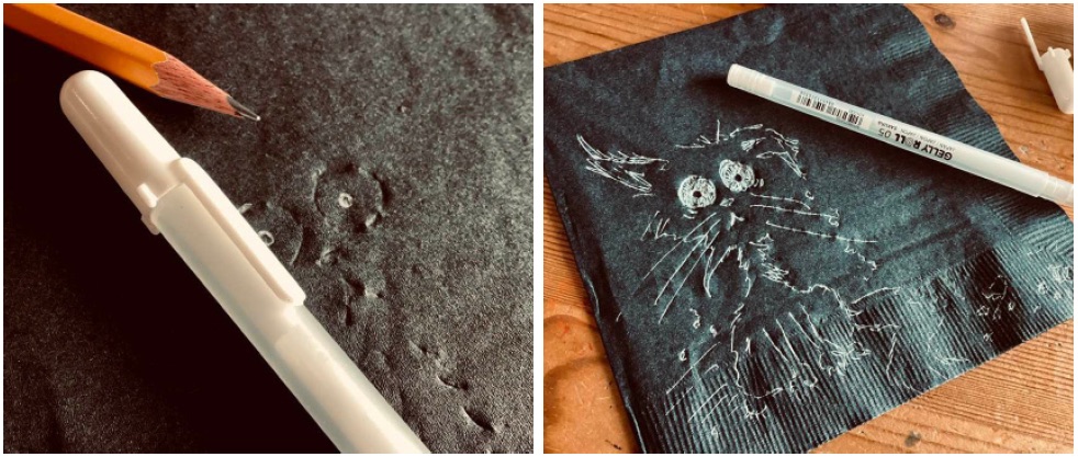 Plain white napkins with black ink are fine, but you can also use any color napkin if you have white or bright-colored gel pens.
