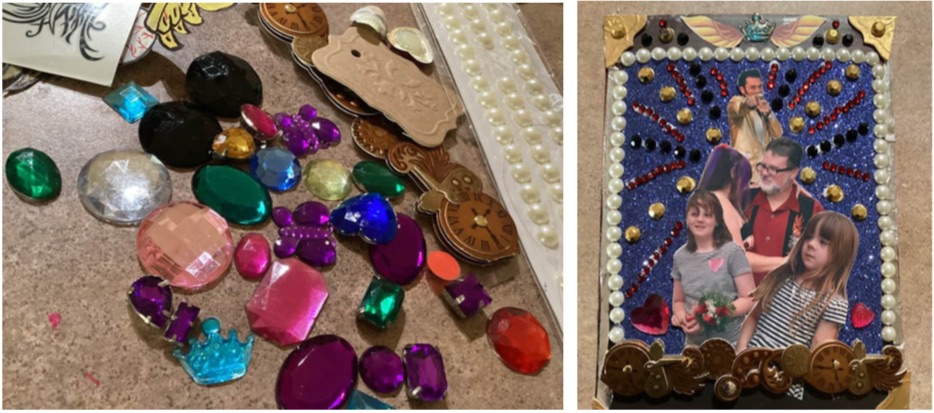Next, gather the materials. An inexpensive pack of jewel embellishments, aluminum foil, gold or silver paint, metallic ribbons or cord, glitter glue, or cool images from catalogs and magazines are among the items you can gather and use.