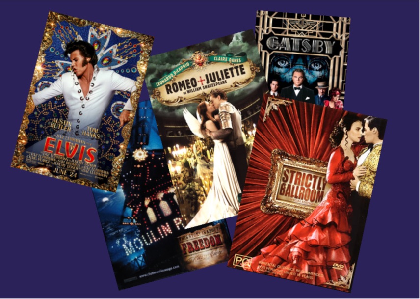 Luhrmann’s movies like Moulin Rouge, The Great Gatsby, Strictly Ballroom, and Romeo + Juliet have taken classic novels and plays, as well as different historical eras, and filtered them through a lens of sparkling exaggeration. There is always amazing music, over-the-top acting, well-crafted costuming, and beautifully constructed sets.