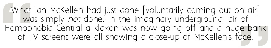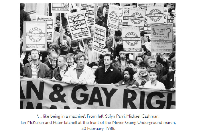 Along with looking at the people responsible for creating the law, a parallel chapter explores those who fought against it. All the now-infamous protests are looked at including the women who invaded the BBC News studios during a live broadcast and those who rappelled down into the House of Lords mid-debate using clotheslines! But alongside these headline-grabbing moments, the book looks at the thousands of other protests that were taking place all over the country both in the run-up to Section 28 being made into law and throughout the time it was on the books. It was this endless barrage of protest and the non-stop work of campaigners who eventually brought about its demise and much of this work is explored. There are many interviews with people who were on the front lines, not least Sir Ian McKellen who helped co-found Stonewall. But not everyone agreed on how best to fight back and this dichotomy is explored too, considering multiple points of view and how it may well have been just that variety that helped the fight keep going.