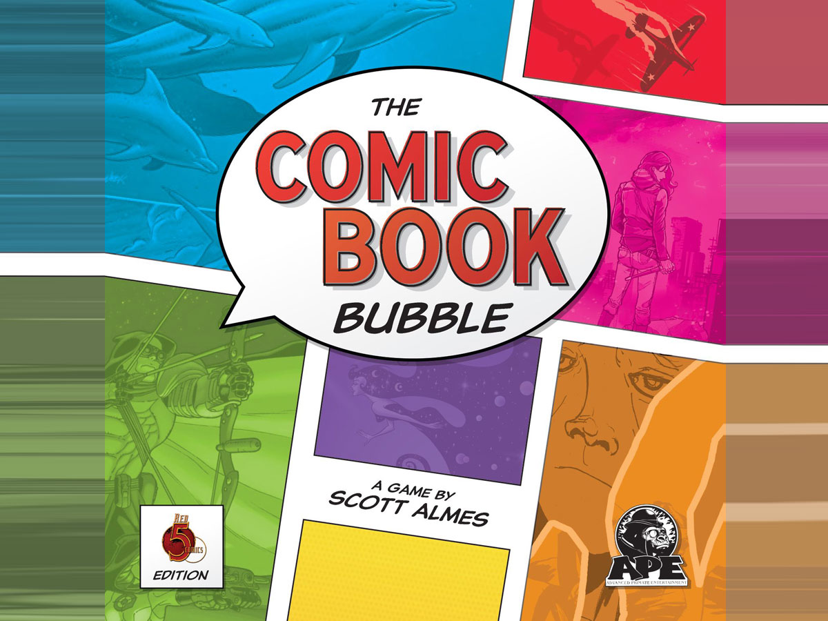 The Comic Book Bubble was designed by Scott Almes and published by APE Games, and includes artwork from Red 5 Comics.