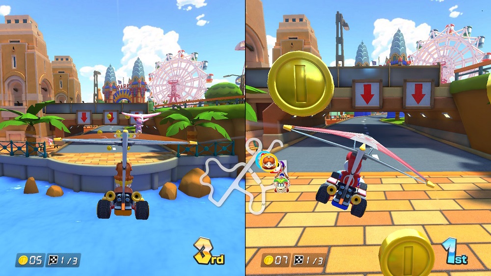 I am tempted to bring out the Wii U and compare the older games and the remastered courses. For example, the Shy Guys are now doing “doughnuts” in their cars in the carpark. And did I see a new shortcut available in Mushroom Gorge? Do not think for one second that you have the advantage of experience. Some of these cups have been tweaked ever-so-slightly—enough to level the playing field in the family.