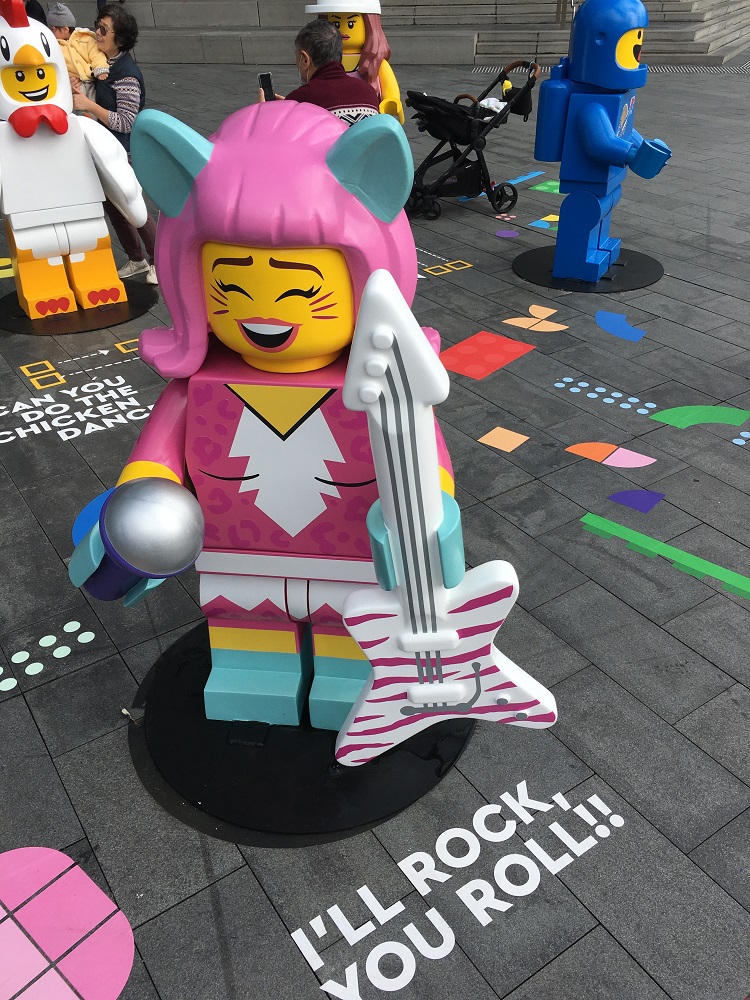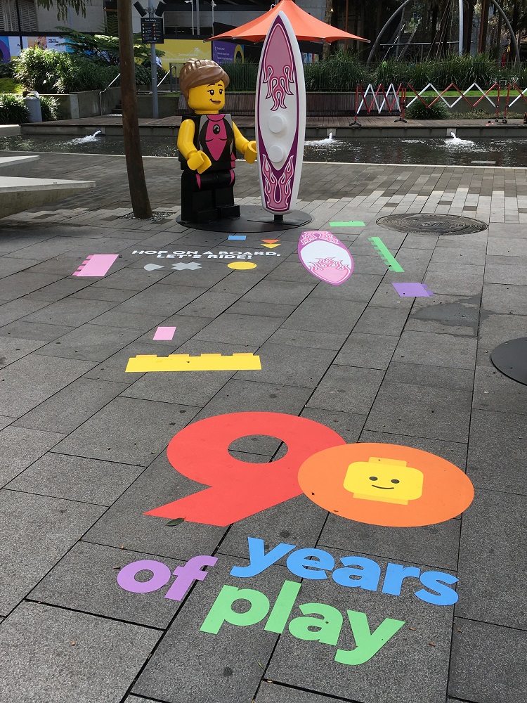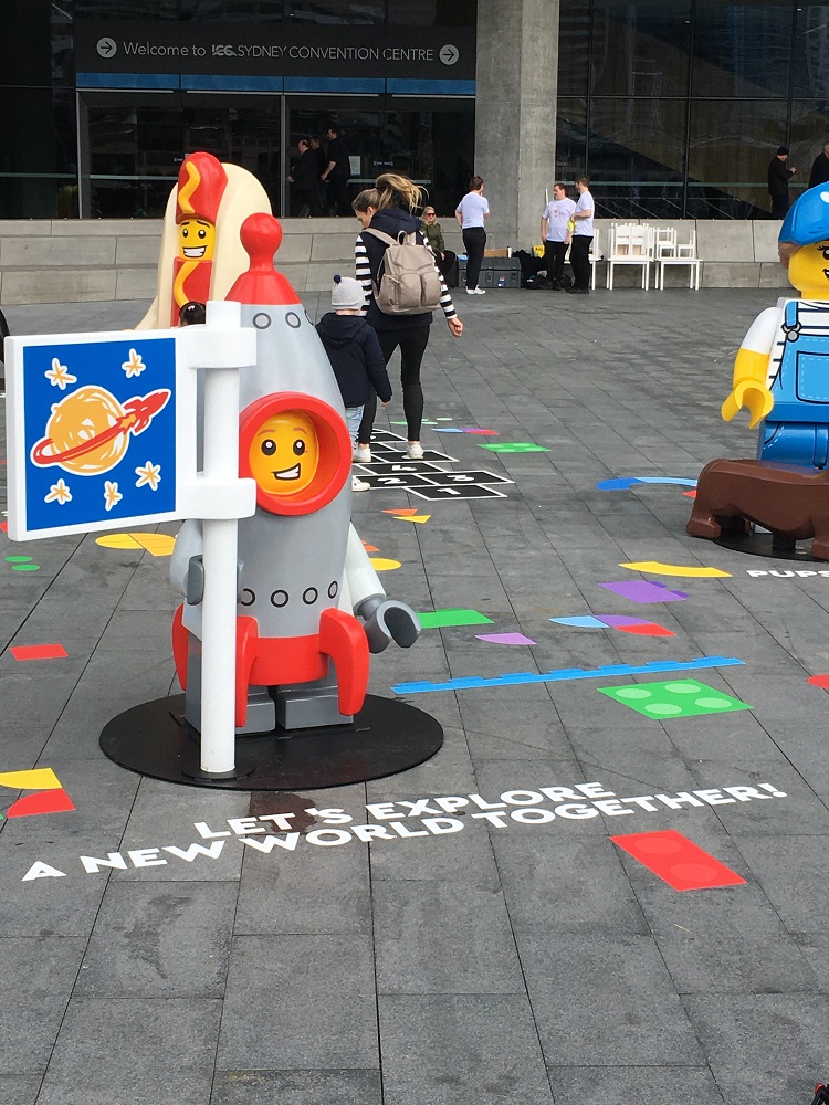 In Darling Harbour (Sydney, Australia), a collection of LEGO Minifigure statues have landed, each with its own suggestion for being a bit more playful. Do you know how to do the Chicken Dance? How about a game of Hopscotch? Or let’s pretend to surf the playful waves! Each statue is based on LEGO Minifigs you can purchase at any LEGO store with themes that are universal for children across all nations and cultures. The idea is to find a Minifig you like and follow their suggestion! The imagination playground is free to the public from Wednesday, August 10, to Sunday, August 14. I watched many young families come down and enjoy the playful ideas on opening day. Little kids loved the entertaining designs, while older kids were laughing along with silly activities and ideas. There were more than a few adults joining in, with AND without kids.