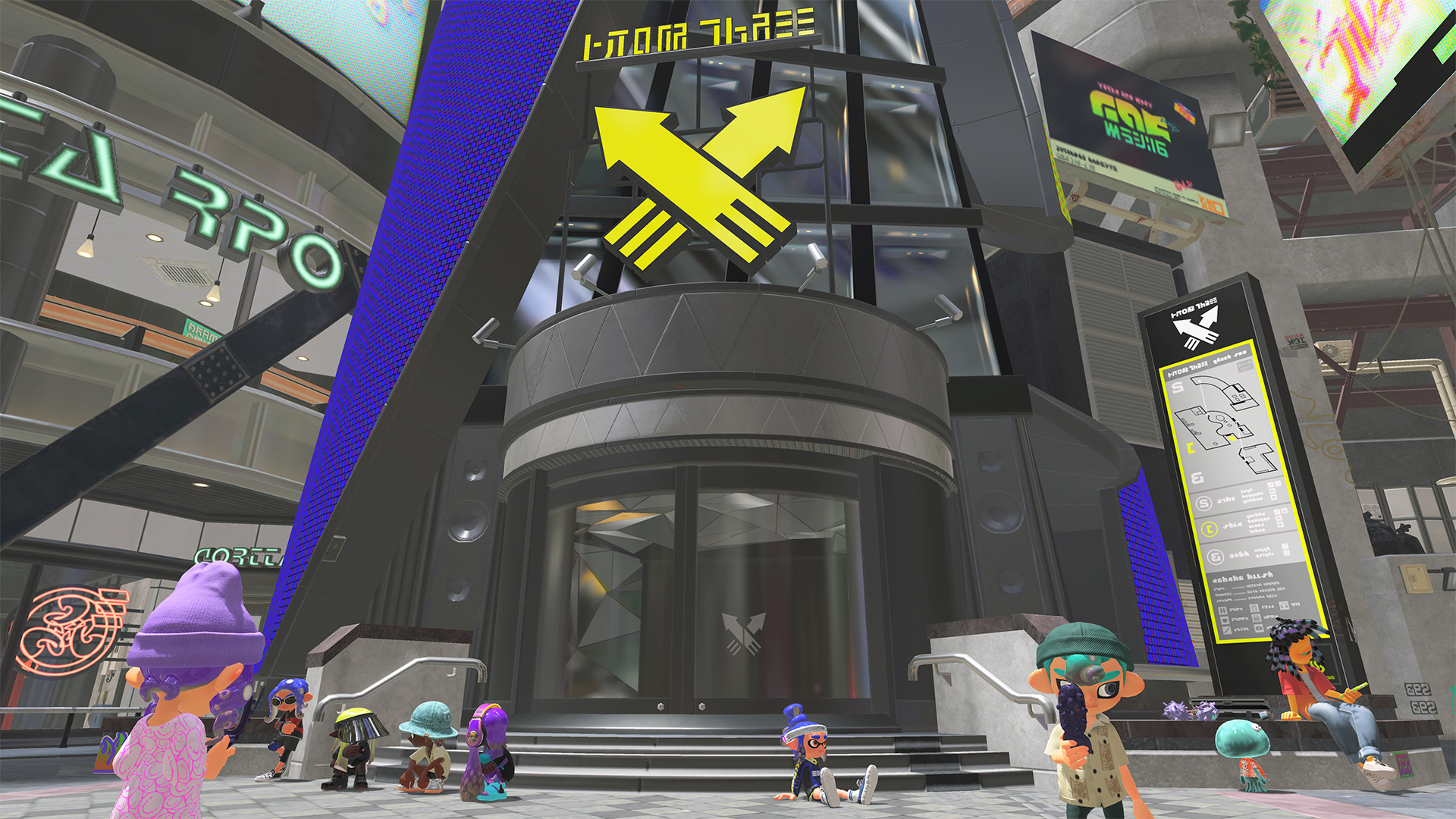 The Splatsville hub is a bustling environment occupied by other player characters and helpful NPCs. It’s also the home of Deep Cut, a musical three-piece that serves as the co-hosts of the Anarchy Splatcast. This regular broadcast helps you stay on top of all the available stages and modes, and Shiver, Frye, and Big Man are welcome additions to the growing stable of Splatoon‘s hybrid musicians/game show hosts.
