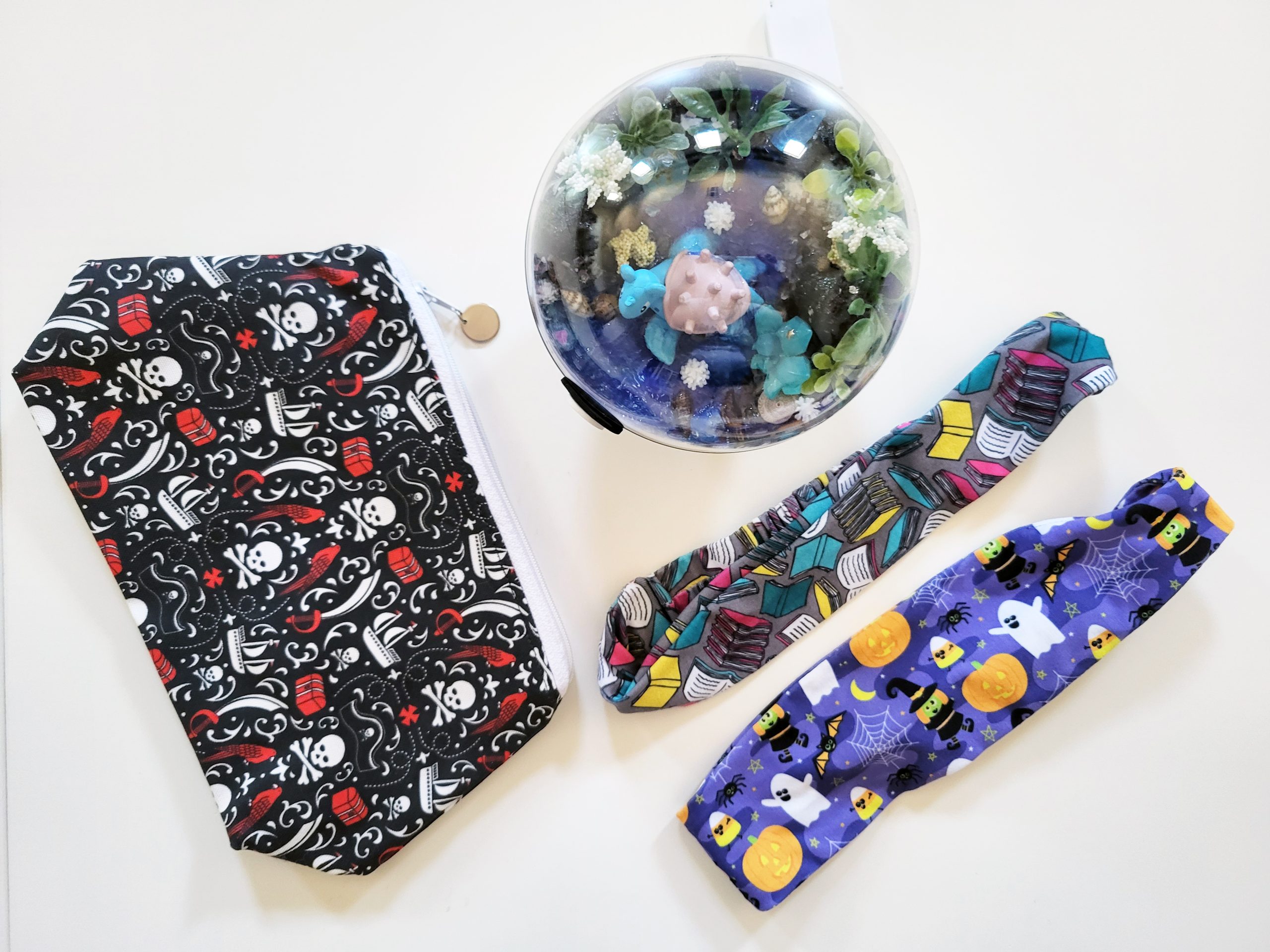 2) The vendors tend to be local so you’re really supporting local artisans. The smaller the convention, the less likely it is that the vendors have traveled from far away. This meant purchases tended to support local small businesses (several local gaming stores had booths) as well as artists/makers that are from our immediate area. With local artists, making arrangements for custom orders can also be much easier. My favorites this year included Jester Gurls Creations who do these beautiful Pokémon terrariums that can even have light up options. We picked up two of them and have a third we’ve reached out about ordering because the Pokémon in question had already sold out. They are just lovely and unique and mine sits on my nightstand at home in a place of honor. My younger kid already wants another and a peek at their Instagram account shows they’ve also done Studio Ghibli and Star Wars designs (I’m seriously going to need a Grogu). Similarly dangerous to my wallet is fabric designer Robyriker Designs who has an amazing selection of fabric designs on Spoonflower including things like pirate icons, books, astronaut cats, science dogs, console game controls, and so many more. If you like premade things, check out her Etsy shop with a variety of items including zipper pouches, infinity scarves, and head bands. Yes, there are options to custom order headbands based on her fabric designs too. Local food trucks also got pulled in to help accommodate food demands and it was certainly nice to see ones we’re familiar with and love. While not truly local, household favorite TeeTurtle had a booth for convention exclusives and let me tell you, that was as dangerous as when they have sitewide sales. Overall, when we weren’t paying hotels and out of town travel, it allowed our budget for grabbing stuff from local vendors much more.