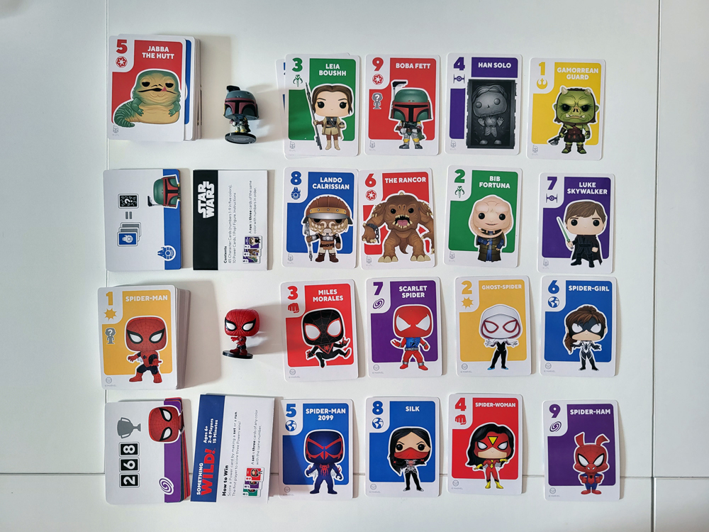 While we board game geeks love our more complex games, sometimes a simple card game really is quite enjoyable. I’m a big fan of Funko Games as a game publisher, and I feel like they have a quality to their fandom-based lines that make their new releases high on my must-check list. While I usually favor things like the Funkoverse line, there is something really fun about their simpler card games. They’re great to teach to kids, but often still enjoyable enough for adults. This is the first time I’ve chosen to check out their Something Wild! line since they had characters that appealed to both of my kids. Funko Games was kind enough to send me copies of Something Wild! Boba Fett and Something Wild! Spider-Man to review.