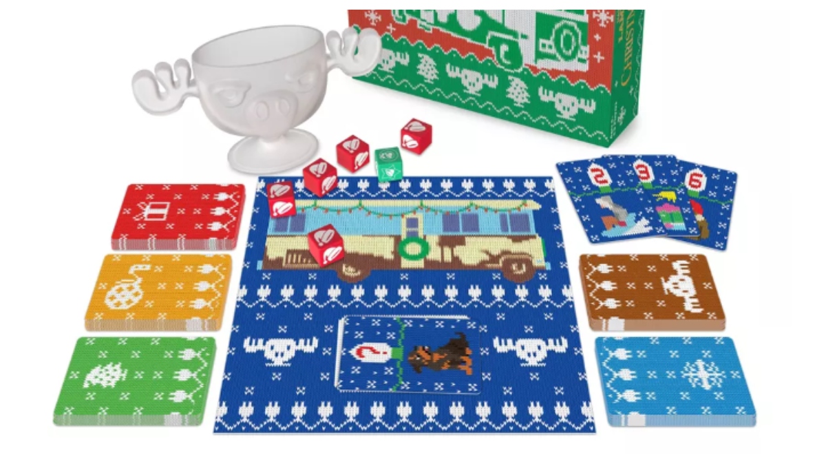 Push your luck in this dice-rolling game to avoid holiday havoc. Includes a Marty Moose tumbler that is probably not best suited for egg nog! This will accommodate 2-5 players, and while it is rated 8 and up, we have yet to even let our 13-year-old watch the movie!