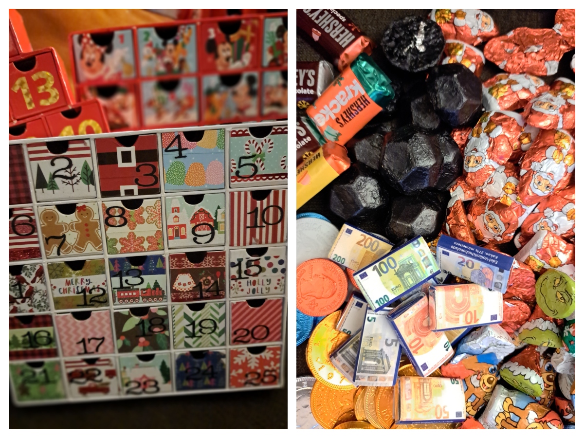 In England, where we have a state religion, the period of Advent is more prevalent than in the US, and much of my childhood was filled with the secular observances that come with living somewhere with a state religion. My non church-going household would light a candle each night in our home, counting down the days to December 24. When I can find one over here, we do that in our family. Each of my children get an Advent Calendar, filled with candies. I have been scouring for appropriately sized and themed, individually wrapped chocolates all month and am very happy with this years selection. Of late my son has been purchasing himself a Funko advent calendar to go along with his chocolate. Last year it was Pokemon, this year Marvel. When my parents still lived in the UK, our advent traditions included taking a picture of the drawer opening each day for Nanny and Grandad. My mum likes that so much, that it hasn’t gone away even though they now only live a mile away.