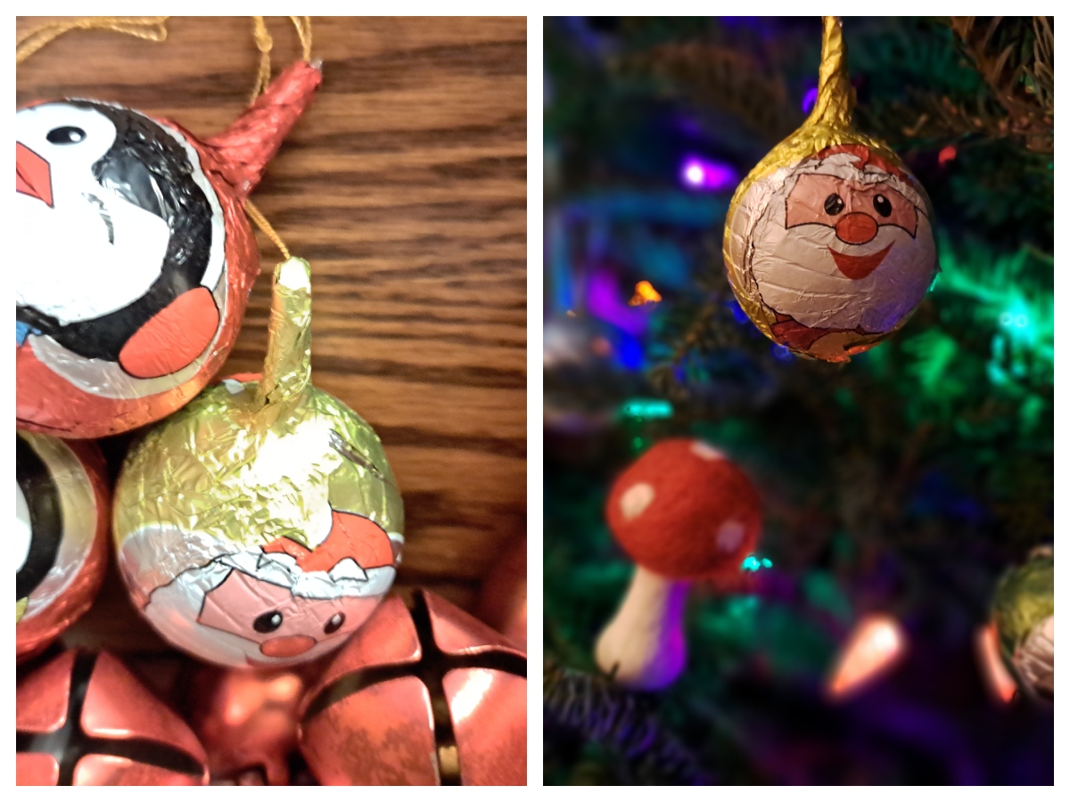 For a truly English Christmas one must also find appropriate chocolates to hang on the tree. Though these are not eaten on Christmas day, they are eaten when the tree is taken day. In my youth this would occur on Epiphany (January 6), but given that I buy a spruce the day after Thanksgiving, we generally don’t make it to January 6. These chocolates are foil wrapped in bright colors. They can be Santa shaped or round, you can even hang bags of gold coins in the tree. One year when I was a child, my mum took down our tree only to discover that every foil chocolate hanging on the tree was empty. My brother had meticulously taken them apart, eaten them, and reshaped the foil around thin air. I might have been disappointed at the time, but as an adult with three children I find myself mightily impressed each year that he accomplished this. And terrified to tell my seven year old daughter this story, because she would do this in a heartbeat.