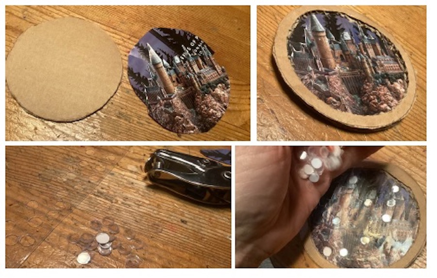 Now, look through your catalogs or magazines to find some nice images. Cool woodland images, Christmas villages, or cityscapes look cool, but really you can use whatever images you like.