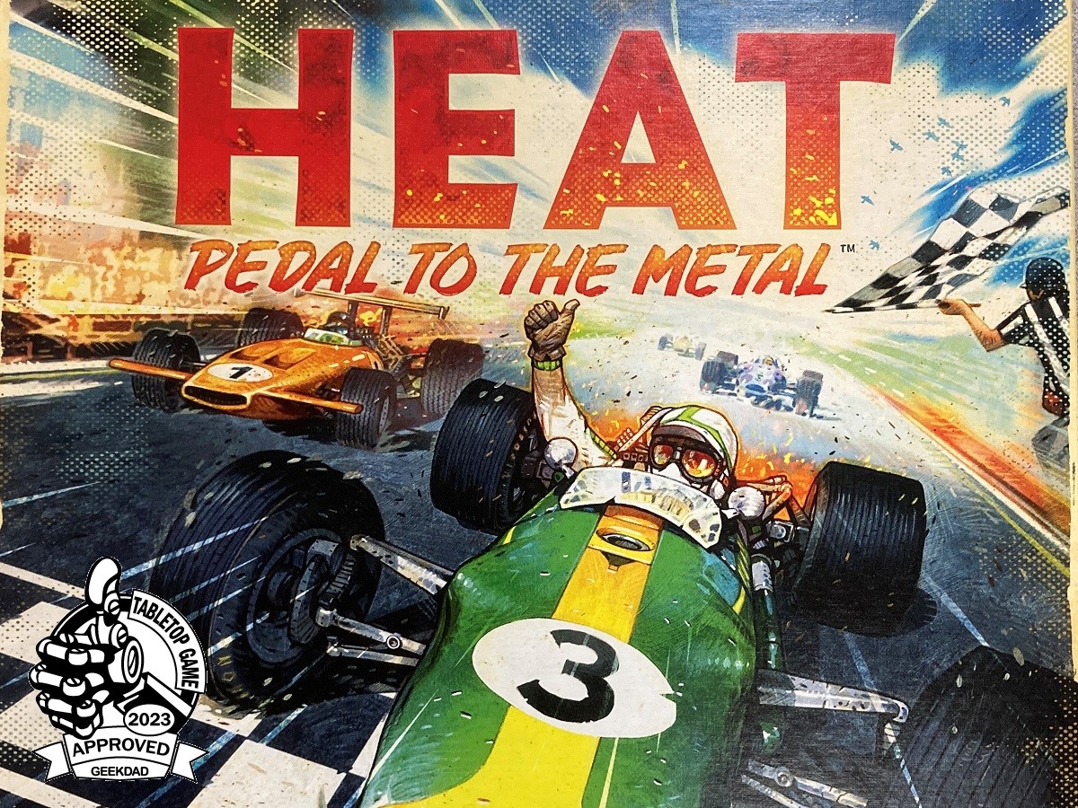 I have always been impressed with games published by Days of Wonder. They are fun games with wide appeal and rules that can be deep but also easy to learn. My family has played and enjoyed many of their games. The designers and artist are all veterans with several well-received titles to their name. Even with the track record of this great combination, Heat: Pedal to the Metal excels on its own merits. Of the racing games I have played, this is my current favorite and with the different tracks and modules, this game can hit the table regularly without becoming old. Furthermore, whether playing it solo or with six players, in my experience, everyone has had a good time and been excited right up to the checkered flag. For these many reasons, I am pleased to give Heat: Pedal to the Metal the GeekDad Approved seal. Whether playing with a family, a game group, of even by yourself. I highly recommend this game.