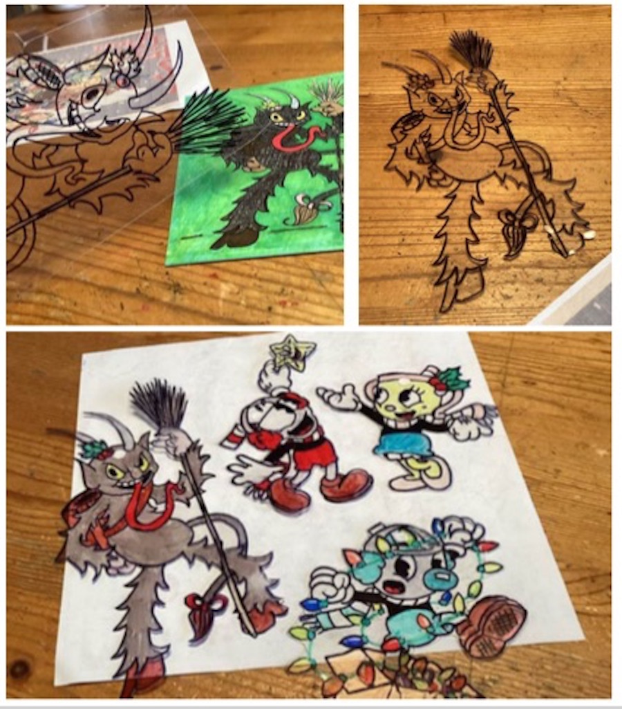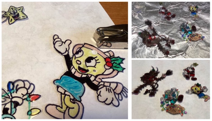 Commercially, we know shrink art via the brand Shrinky Dinks, which has been around since 1973. This item was created by a Wisconsin-based maker, Betty Morris. The shrinking process can even be part of a STEM project, and a good article and project from Carnegie Mellon University’s Gelfand Center give a nice explanation of the science behind the shrinking (aka molecular rearranging of polymer materials).