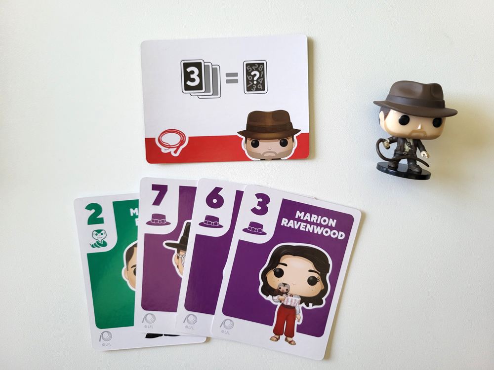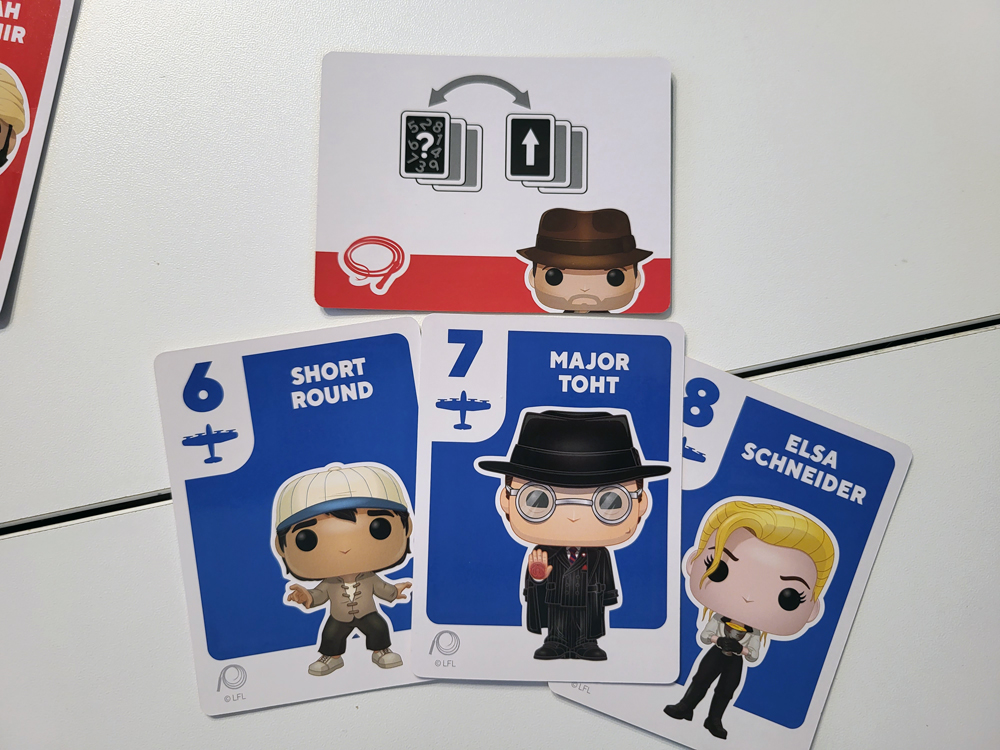 As I mentioned previously, since the Something Wild! line is based off of fandoms, the components for each game are all designed around a particular franchise. Since this version is based off of Indiana Jones, we get a little Pop! Mover that looks like the beloved whip and fedora packing adventure hero in mini Pop! Vinyl form with the cards featuring various Indian Jones allies and enemies In Pop! Vinyl style artwork. The cards are typical playing card thickness and should hold up decently for lots of play sessions. The Power Cards do use symbols that have a guide in the Instruction Booklet, so make sure that doesn’t get lost. The Instruction Booklet has all of the rules set up in a quick-to-read and easy to understand manner with good use of diagrams. I tend to like how Funko Games makes their components and this game is no different.