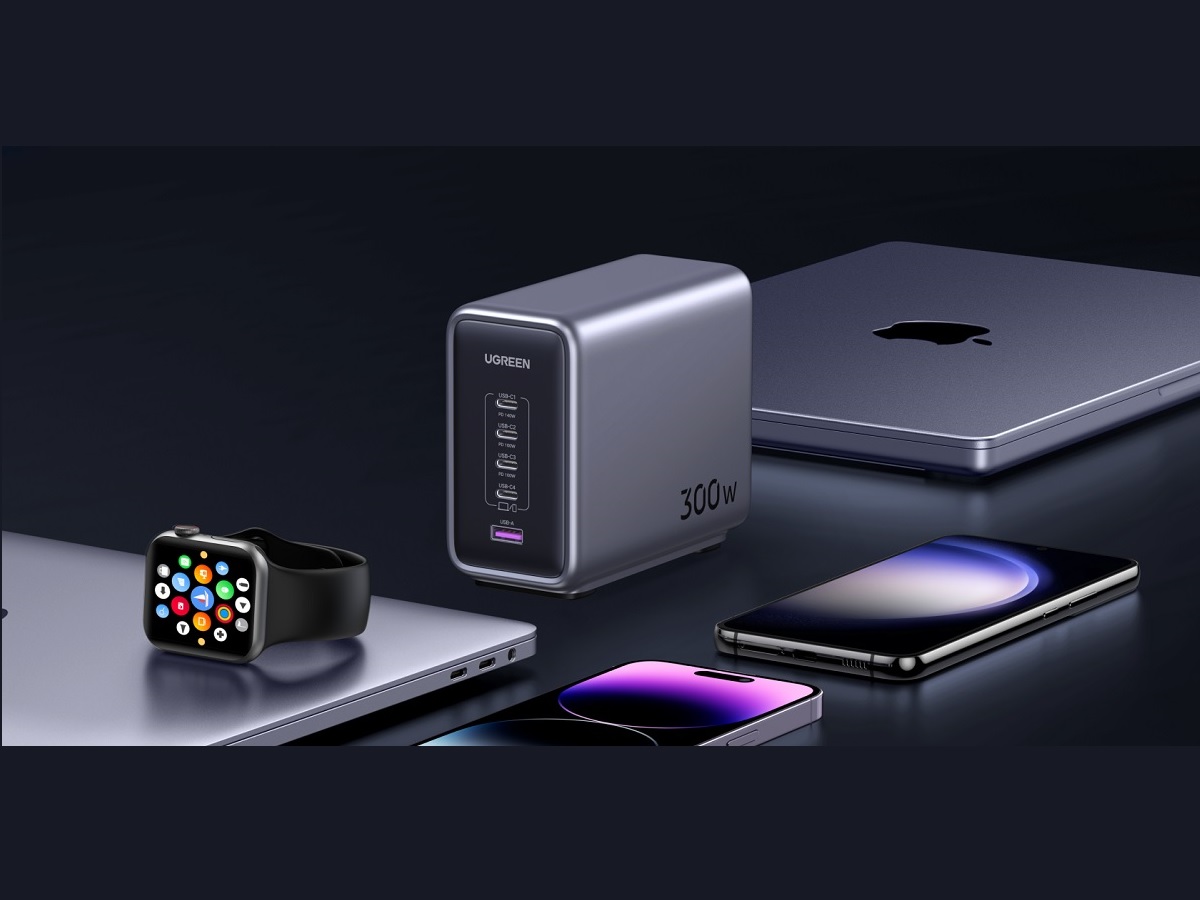 It seems people are using more and more devices on a regular basis–and they all need to be charged regularly. When I consider my own devices, I need to be able to charge a laptop, iPhone, Apple Watch, tablet, and earbuds. In order to keep all five devices charged, I need a power strip to plug them all in. However, there is now a new product that can keep all my devices charged without needing a vast variety of adapters and a power strip. UGREEN has just released their new Nexode 300W 5-port GaN fast charger.